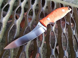 The handle is available in many materials, but I recommend G10 or micarta with a sculpted finish which adds a considerable amount of grip for when things get mucky and slick! Due to several requests, a larger version is also available for the bigger species of deer, and in fact the dimentions can be customised within reason to suit your needs.