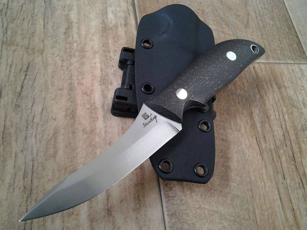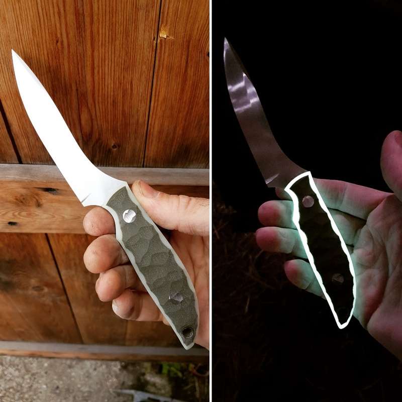 The handle is available in many materials, but I recommend G10 or micarta with a sculpted finish which adds a considerable amount of grip for when things get mucky and slick! Due to several requests, a larger version is also available for the bigger species of deer, and in fact the dimentions can be customised within reason to suit your needs.